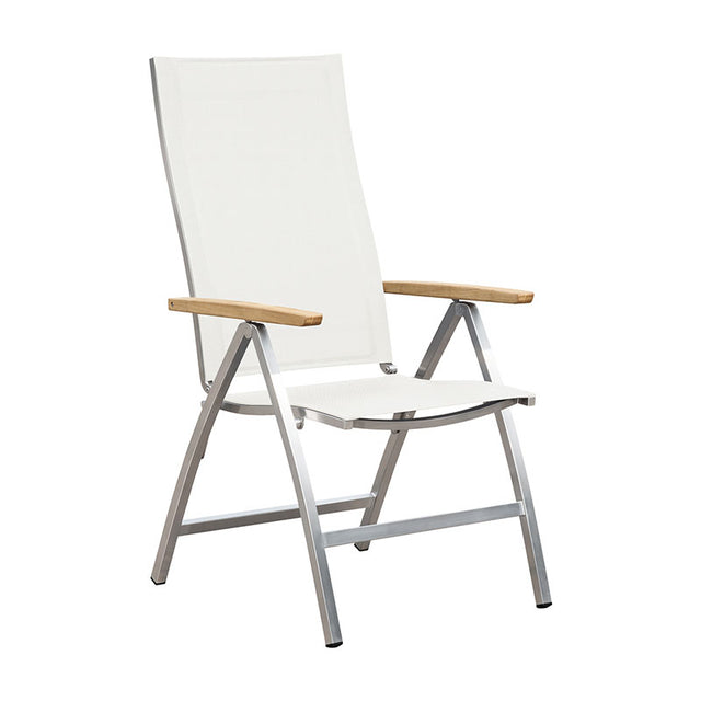 Alzette Hochlehner Edelstahl mit Batyline und Teakholzarmlehne