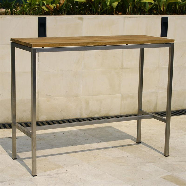 Zilart Bar Tisch - Vintage Teak gebürstet + Edelstahlgestell