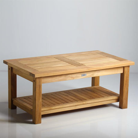 Briston Sofatisch 105 x 60cm mit Ablage zertifiziertes Teak Grade A mit 6x6 cm Tischbeinen