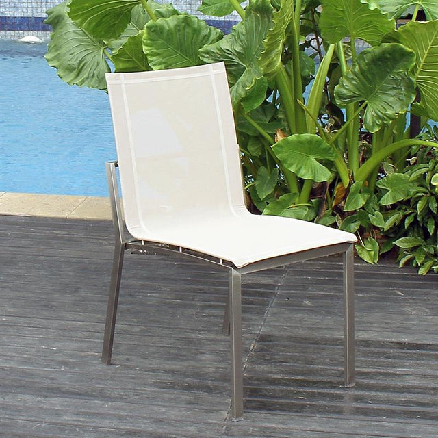 Alzette Esstischstuhl Edelstahl mit Batyline Bespannung - Weiß (5001) ist auf Lager und wird versandt, sobald es wieder verfügbar ist
