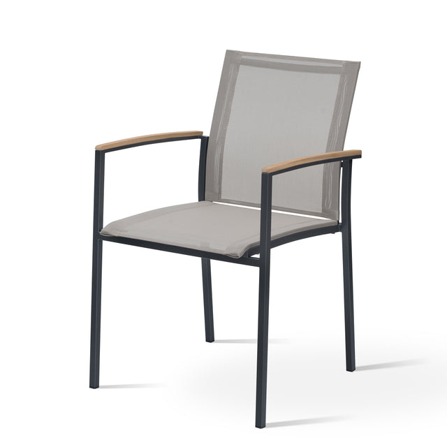 Alzette Stapelstuhl Eco pulverbeschichtet Edelstahl + Batyline + Teakholzarmlehne - Graubeige (5014) ist auf Lager und wird versandt, sobald es wieder verfügbar ist