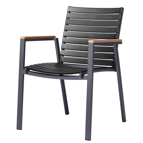Mood Air Stapelstuhl Schwarz/Anthrazit Aluminium pulverbeschichtet mit Teakarmlehnen