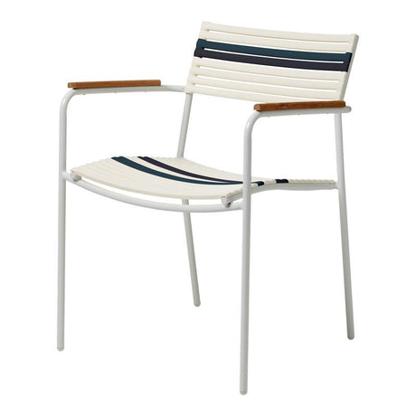 Mood Classic Stapelstuhl Weiß/Weiß+Grau/Petrol Aluminium pulverbeschichtet mit Teakarmlehnen