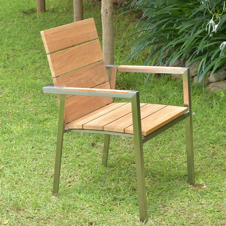 Zilart Stapelstuhl Teak Grade A gebürstet - Teak GRADE A NATUR gebürstet + Edelstahlgestell