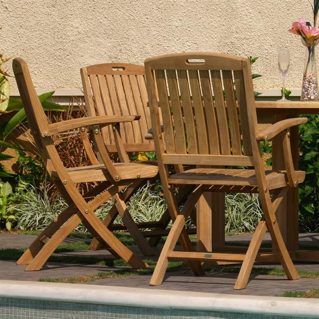 Denver Set 80 consisting of Denver Round Table 80 and Denver folding chairs with armrests teak with brass fittings