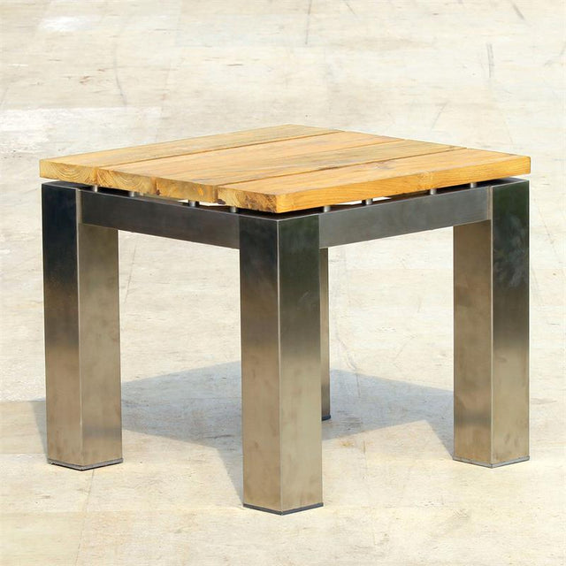 Zilart side table/stool 50 x 50 x 45 cm - Teak GRADE A NATURAL brushed + stainless steel frame