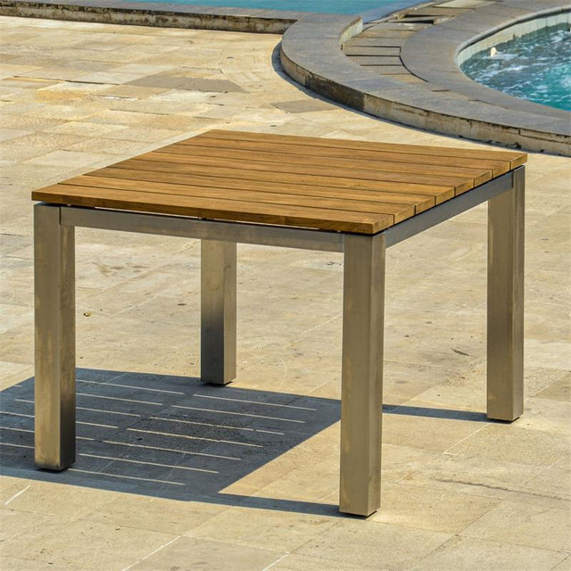 Zilart dining table 100 x 100 x 75.5 cm Teak Grade A - Teak GRADE A NATURAL brushed + stainless steel frame is backordered and will ship as soon as it is back in stock.
