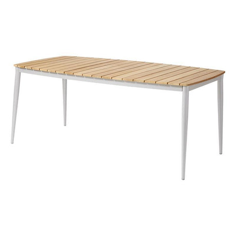 Rio table 180 x 90cm rectangular white - exhibition aluminum powder-coated with teak table top