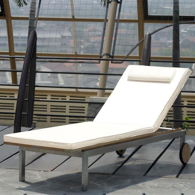 Thanks to the particularly smooth-running wheels on stainless steel axles, you can easily maneuver the Moselle lounger to any of your favorite spots. Because the frame is made of stainless steel and the lounge surface is made of the highest quality, weatherproof plantation teak, the lounger can stay outdoors all year round, no matter the weather.