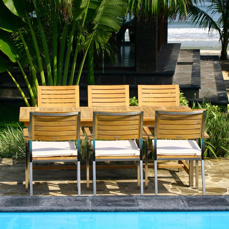 Teak, known for its exceptional durability and beauty, is the heart of our teak furniture at Teakoutlet. This exotic hardwood originates from the tropical forests of Southeast Asia and, thanks to its remarkable properties, is the ideal choice for outdoor furniture. Teak is characterized by its natural resistance to weathering, rot, and insects, making it perfect for use in the garden, on the patio, or by the pool.