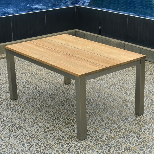 Planka dining table 160 x 100 x 76 cm brushed teak grade A with stainless steel frame