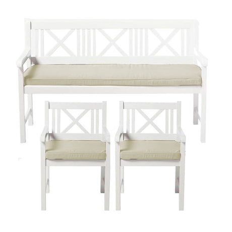 Rosenborg garden set - table + bench + 2x chairs - certified mahogany wood, glossy white lacquered