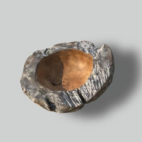 Teak bowl "Sui" large black/grey flamed with brown hollow