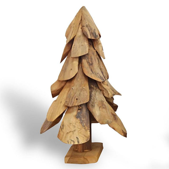 In Handarbeit werden aus Teak-Treibholz wirklich beeindruckende Tannenbäume gearbeitet. Dies ist nicht nur perfekte Weihnachtsdekoration, sondern bietet auch ganzjährig spektakuläre Ansichten. Die einzelnen Holzstücke werden zu Ästen und Stämmen geformt und mit Holzdübeln verbunden, so dass im Zusammenspiel von mehreren Bäumen der Eindruck eines natürlichen, außergewöhnlichen Deko-Waldes entsteht.