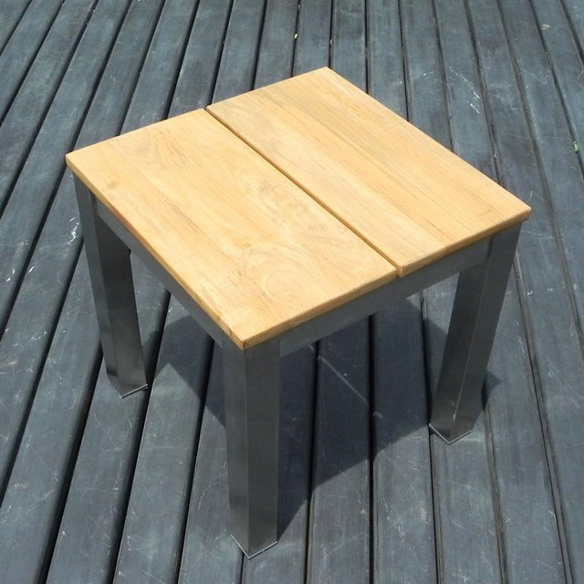 Fides stool/side table 45 x 45 x 45 cm vintage teak with stainless steel frame