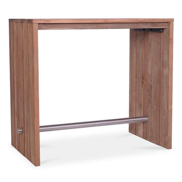 Table de bar Clio en teck recyclé brossé et acier inoxydable