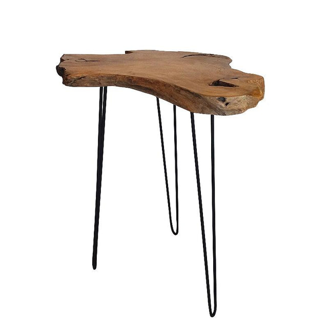 Table de bar en teck Root en bois de racine de teck massif, finition naturelle - avec pieds en acier