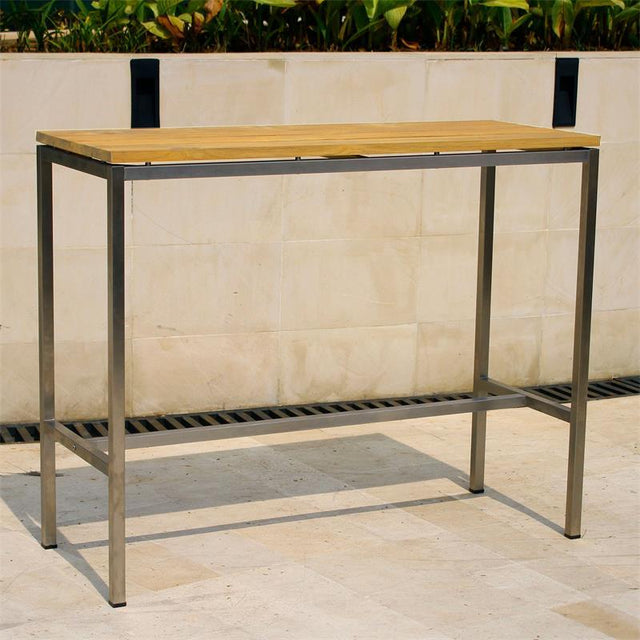 Table de bar Zilart en teck GRADE A brossé - Teck GRADE A NATUREL brossé + structure en acier inoxydable est en rupture de stock et sera expédié dès qu’il sera de retour en stock.