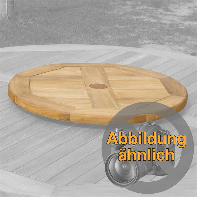 Wer es einmal benutzt hat, möchte es nicht mehr missen... als besonders praktisches Zubehör gibt es dieses Drehtablett, dass dafür sorgt, dass jeder in der Runde Zugriff auf Speisen und Getränke hat. Das Tablett verfügt über ein verschließbares Schirmloch, sollte mal ein Sonnenschirm am Tisch zum Einsatz kommen kann es dennoch mittig plaziert werden.